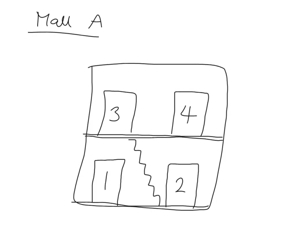 Mall A has the traditional setup: